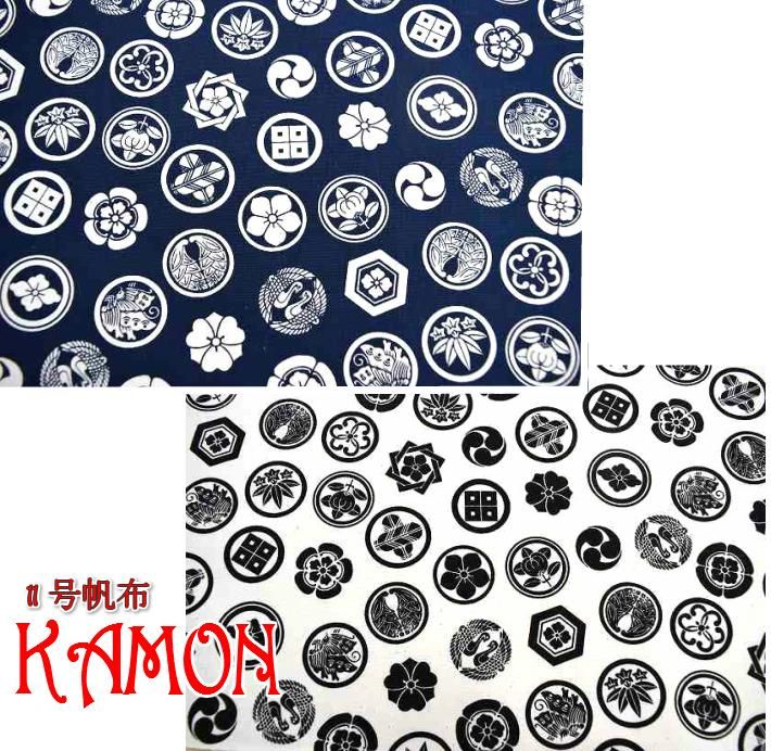 11号帆布 KAMON /生地/布/綿/家紋/セール生地/パッチワーク/和柄帆布/ポーチ/巾着/和柄