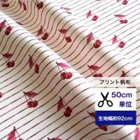8号プリント帆布【50cm単位】「cherry music」 コットン100% 布 さくらんぼ 音符 手作り ハンドメイド 帆布 トート 帆布バッグ サコッシュ チェリー